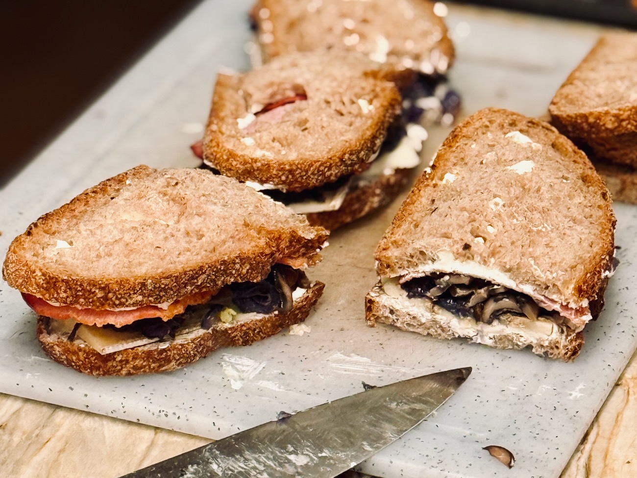 Leurs recettes évoluent au gré des produits du moment. Ce midi, le “toasty” d’été cédait la place à son alter ego automnal. Le nouveau venu empilait entre deux tranches de pain complet, une généreuse couche de crème cheese, du bacon moelleux, un chou chinois finement tombé, une tranche de tomme coulante de la Fromagerie Bédarrides et de beaux champignons.