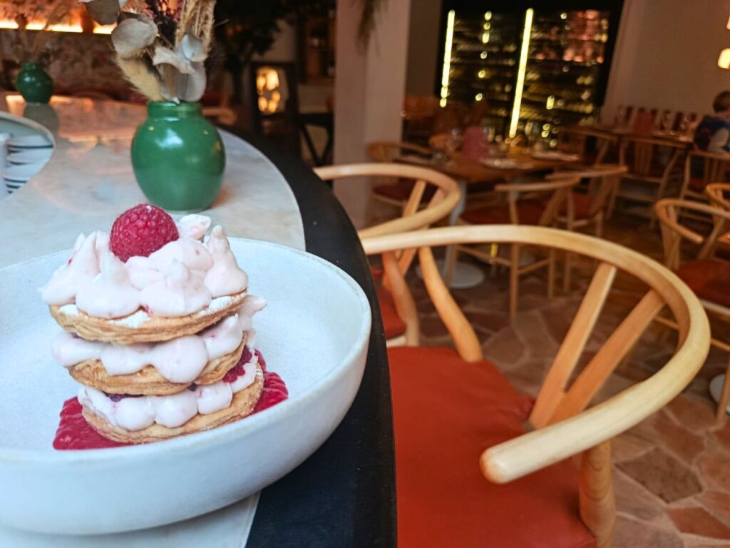 Au bar, le mixologue Samy compose une carte de breuvages raffinés : sirops maison, démarche zéro gaspi (prosecco recyclé, agrumes transformés) … De quoi siroter sans une once de culpabilité.