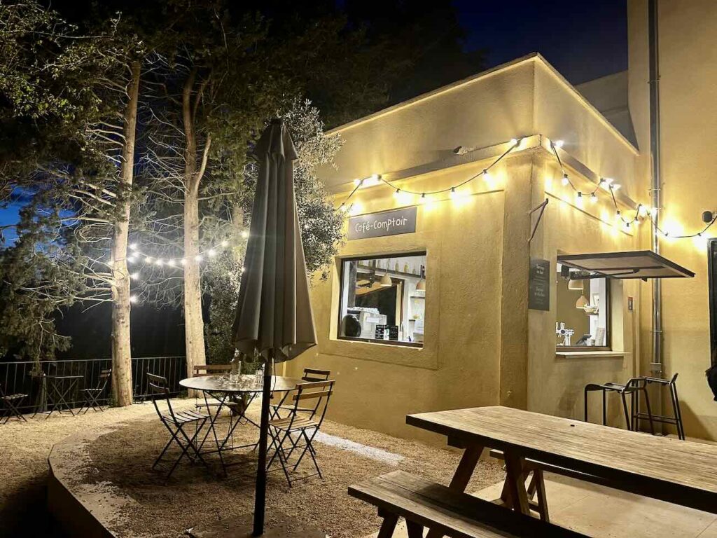 Au milieu du camping une grande bastique historique permet de prendre ses petit déjeuner, l’apéro au sunset avec une planche de charcuterie et un rosé frais du coin après une petite partie de baby-foot ou de pétanque. Certains jours, le cabanon propose en plus des pizzas ou autres petit plats à partager.