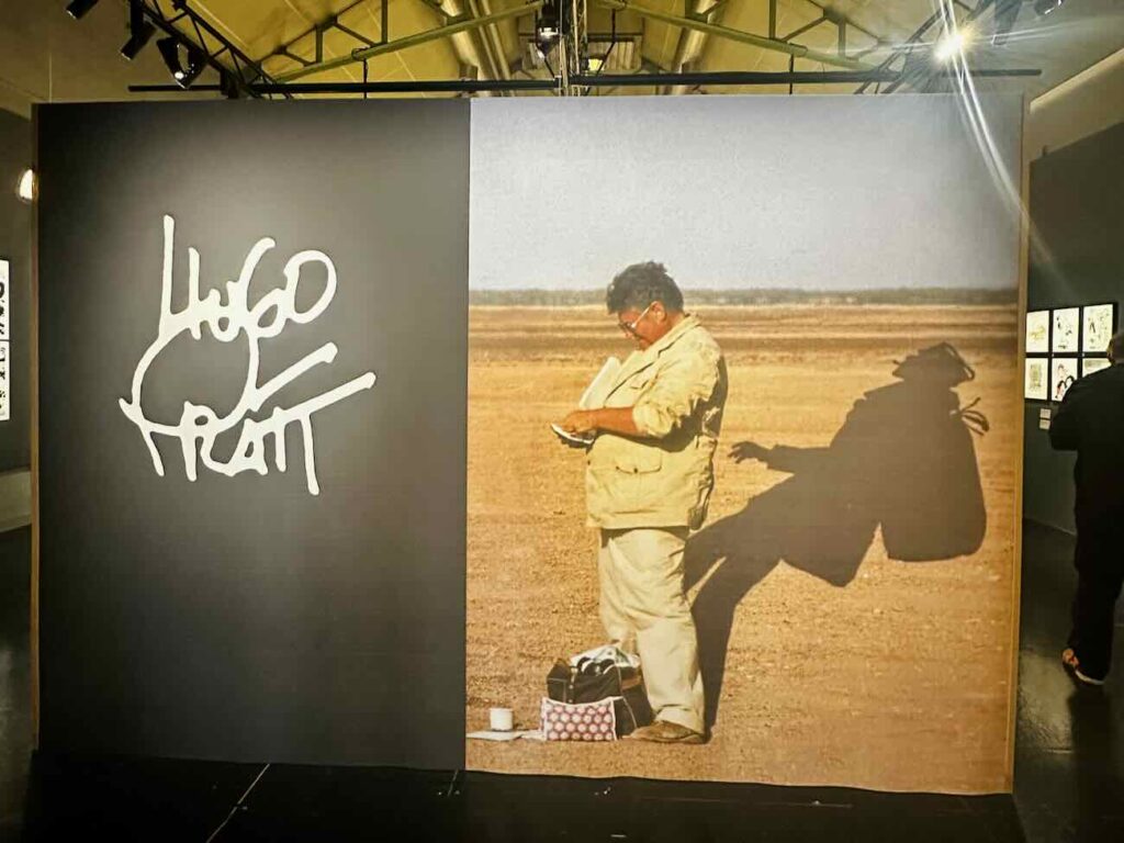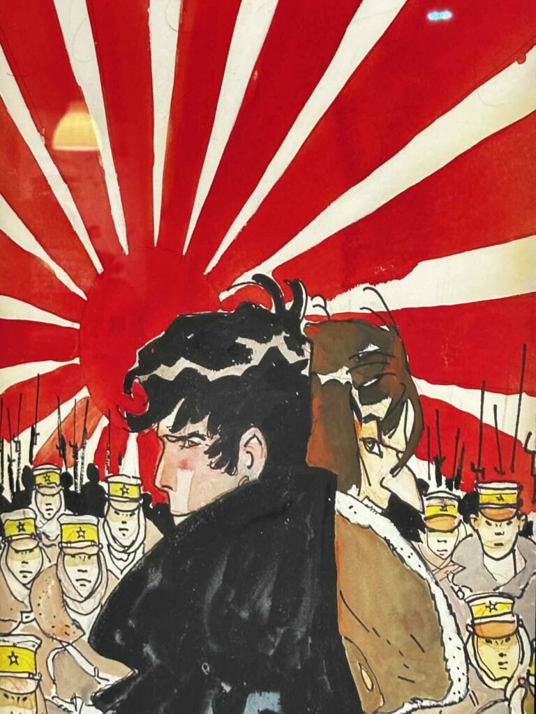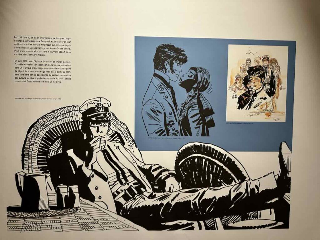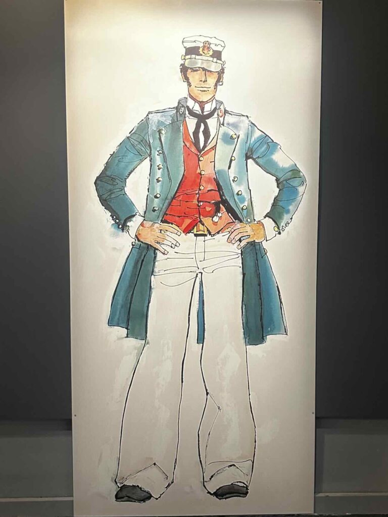 Corto Maltese apparaît comme un point d’équilibre dans cette exposition : ni totalement héros, ni totalement observateur.